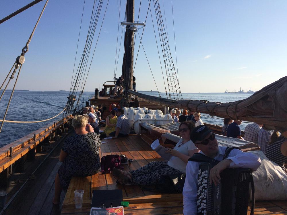 Molemmat risteilyt olivat täynnä iloista ja laulavaista väkeä. Aurinko helli risteilijöitä ja lempeä merituuli tarjosi viilennystä lähes hellelukemiin yltäneessä lämpötilassa. Laulattamassa olivat Kristiina Lanki ja Kari Arffman. Säestyksestä vastasi, kukapa muu kuin Mika Huusari.