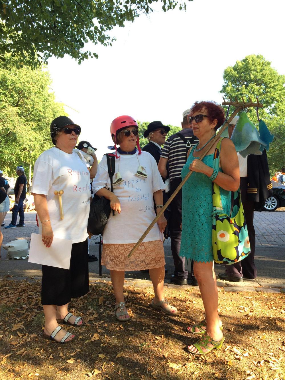 Paraatissa nähtiin joukko Junnun lauluiksi pukeutuneita hahmoja. Salakuljettaja Laitinen, Entiset Merimiehet, Matkarakastaja, Regina Rento, Lyyli Leväperä, Panaman Konsuli, Aikaan sinikellojen, Yksinäinen Saarnipuu ja Vanhoja poikia viiksekkäitä.
