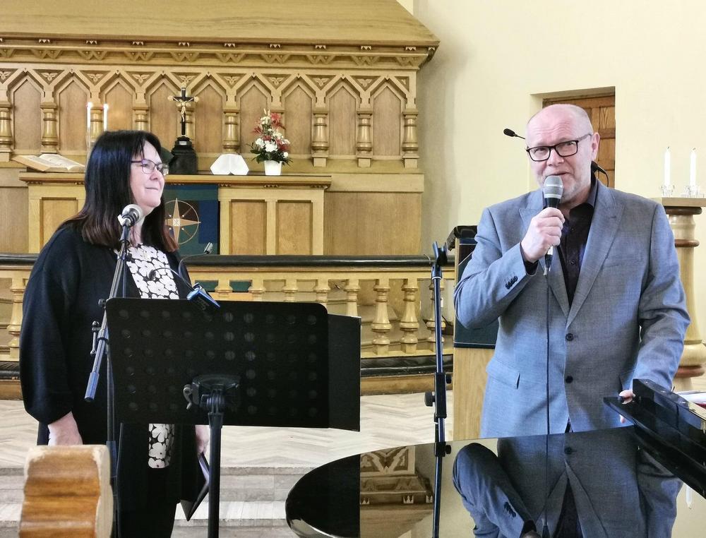 Laulattamassa Anton Laamanen ja Kristiina Lanki. Säestyksestä vastasi Mika Huusari.