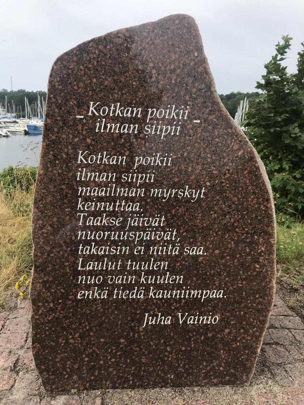 Kotkan kaupungin vihertoimi on vuosien varrella kunnioittanut Juha Vainion tuotantoa asettelemalla Juha Vainion kadun varrelle useita kiviä (riimikiviä), joihin on kaiverrettu otteita eri laulujen teksteistä.